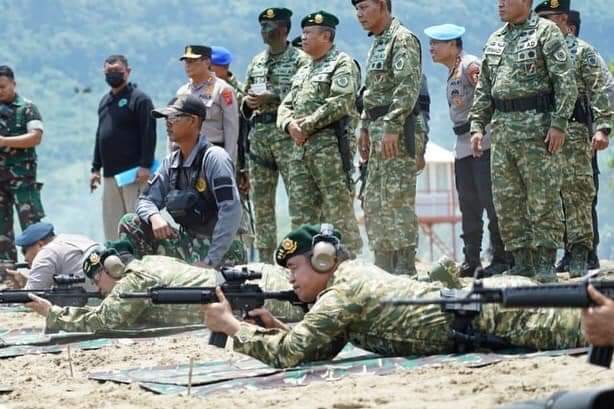 Pada kesempatan tersebut, Kapolri didampingi Pangkostrad dan sejumlah pejabat utama Polri dan Kostrad menembak sasaran di laut.