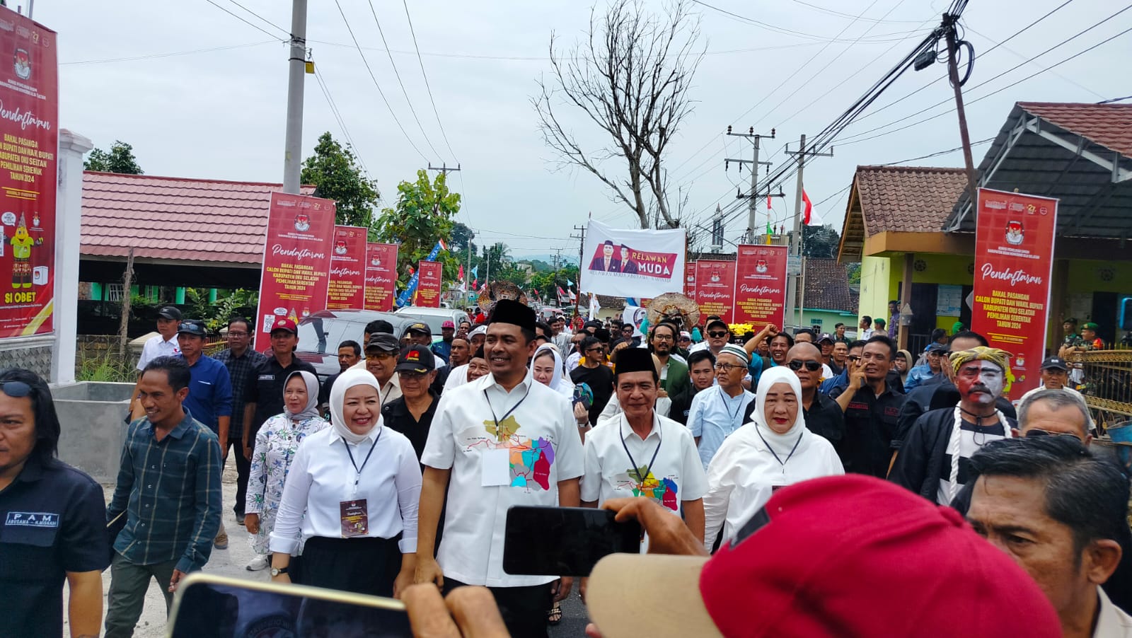 Pantauan di lokasi sekitar pukul 12:00 WIB, pasangan bakal calon bupati dan wakil bupati OKU Selatan Abusama-Misnadi datang ke kantor KPU OKU Selatan diiringi oleh lautan manusia yang menggunakan iring-iringan kendaraan roda dua maupun roda empat.