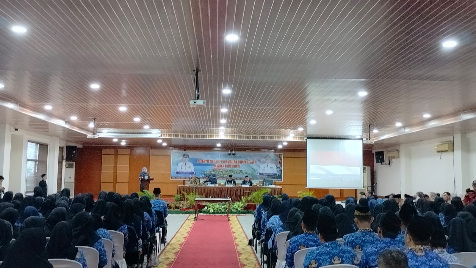 Pelantikan dan pengambilan sumpah janji jabatan fungsional Pegawai Negeri Sipil (PNS) ini dilaksanakan di aula Serasan Seandan Pemda Setempat. Selasa (27/06/2023).